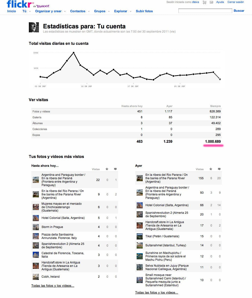Un millón de visitas a mis fotografías en Flickr
